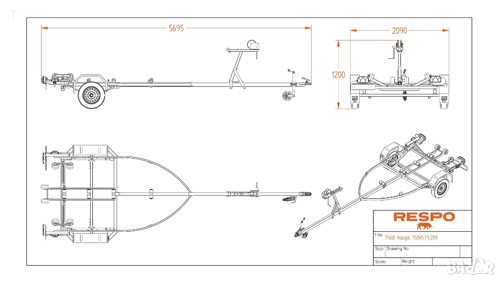 НОВО Туристическо ремарке - колесар за лодка RESPO 750V571L209 с общо тегло до 750кг. ЦЕНА НА РЕМАРКЕТО 3450лв - 1763.96 € с ДДС