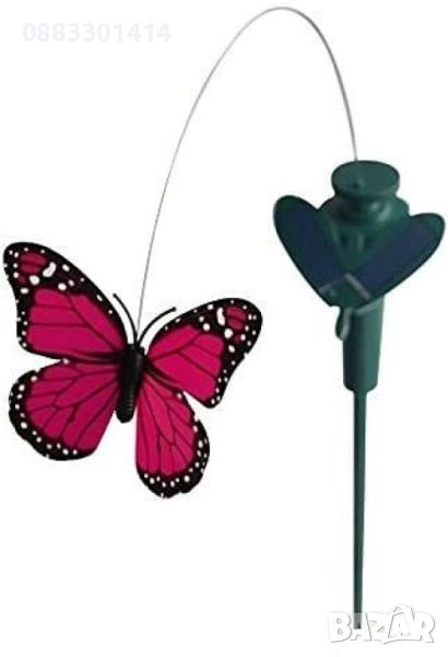 Изкуствена пеперуда за ефектна декорация на градината или двора. Благодарение на слънчевите и батерии, тя ще трепти и лети като истинска из Вашата градина, а Вашите деца ще се забавляват и играят около нея. Тази нестандартна придобивка ще внесе причудлива магия около цветята във Вашия дом