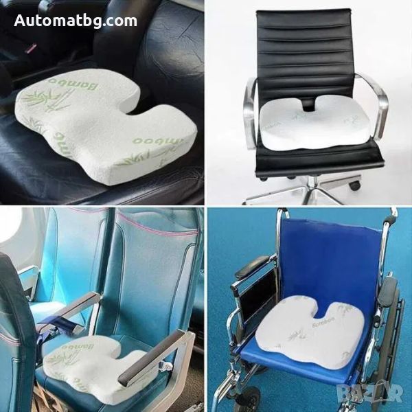 Ортопедична анатомична възглавница с бамбукови нишки за сядане от мемори пяна, спомага за премахване на болките в кръста, поддържа гръбнака и способства за правилна стойка.