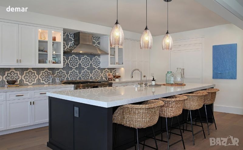Aiehnid Glass Shade Висяща лампа с батерии, дистанционно, синьо