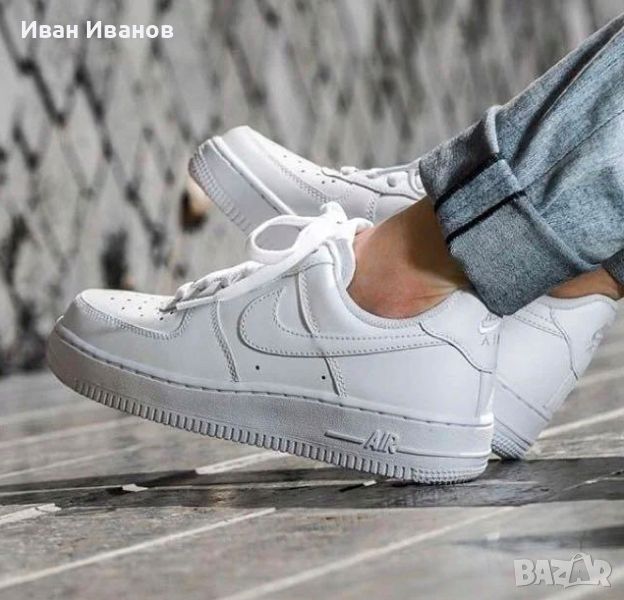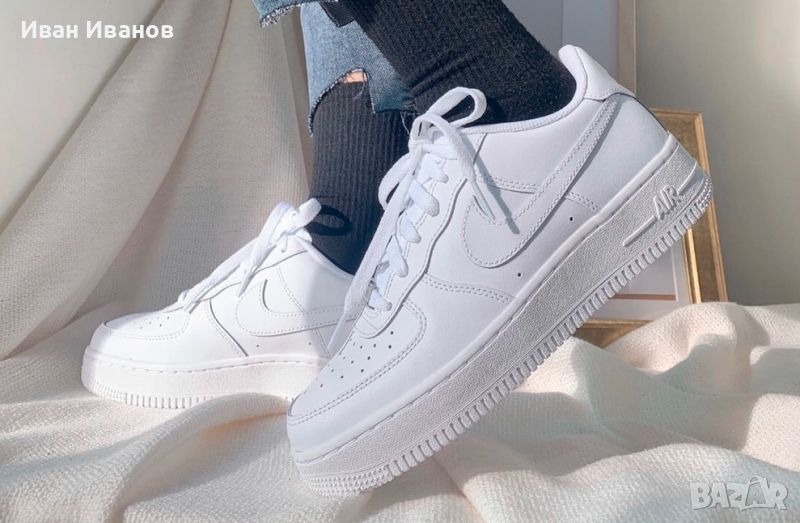 Много малко използвани , като нови , без следи и забележки по кожата ,Красиви , модерни и удобни .Един от най продаваните модели на Найк . Чистият бял цвят на обувките Nike Air Force 1 Low LE GS All White DH2920-111 е специален акцент, който ви помага да блеснете в тълпата. Издръжливият кожен материал и гумените подметки с добро сцепление ви помагат да се чувствате комфортно, когато ходите или участвате в спортни дейности.По-специално, подметката на обувката е проектирана с усъвършенствана технология, което прави тези обувки Nike Air Force 1 Low LE GS All White Shoes DH2920-111 по-меки, носейки комфорт на краката, когато се използват за дълги периоди от време.Представяме ви маратонките Nike Air Force 1 LE Triple White (GS). Проектирани от Nike, тези маратонки са задължителни за хората, които се стремят към модата. Отличаващи се с елегантен изцяло бял дизайн, тези обувки предлагат класически и модерен външен вид. Идеални за ежедневно носене, тези маратонки съчетават стил с комфорт. Излезте със стил с маратонките Nike Air Force 1 LE Triple WhiteКожените маратонки на марката Nike са задължителен елемент на градските визии. Предлагаме класическия модел Air Force 1 в младежки размер. Версията all white ще е идеална за всяка визия. Мека, текстилна подплата изпълва обувките отвътре. Връзките дават възможност за индивидуално напасване към крака. В междинната подметка от пяна се крие амортизация Air Sole. Обувката завършва с гумена, устойчива на износване външна подметка.