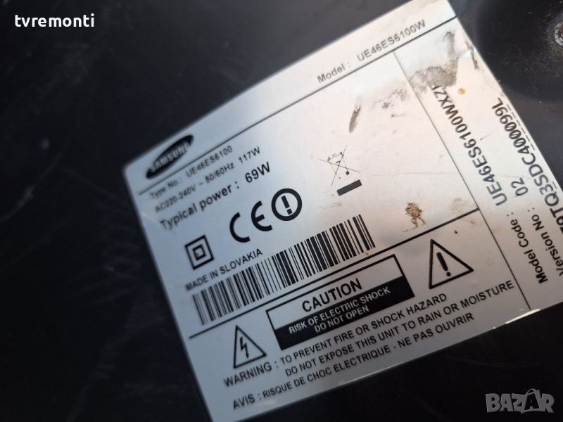 Main Board BN41-01812A BN94-05898B for Samsung UE46ES6100 46inc DISPLAY LTJ460HW05-C борда е гарантирано работещ Демонтиран от телевизор Samsung модел UE46ES6100 със счупен дисплей LTJ460HW05-C тествана от нашия техник Ремонт на всички марки съвременни телевизори