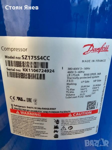 Хладилен компресор Danfoss SZ175S4CC, снимка 1 - Други машини и части - 46413931 Хладилен компресор Danfoss SZ175S4CC, снимка 2 - Други машини и части - 46413931 Хладилен компресор Danfoss SZ175S4CC, снимка 3 - Други машини и части - 46413931 1/3
