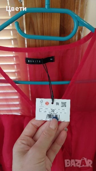 Роклята е цикламена, просто на светлината се вижда червена. Не е носена, малка ми е и ме стяга