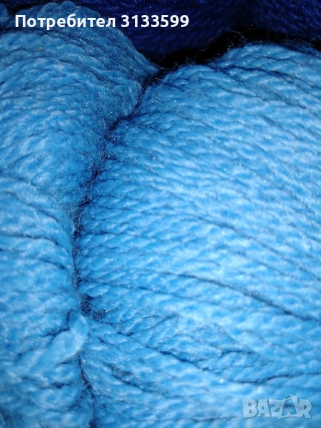 Синя и тъмночервена дебела вълнена прежда; "Жива" вълнена прежда; Три цвята х 50 г → Обява 46415528