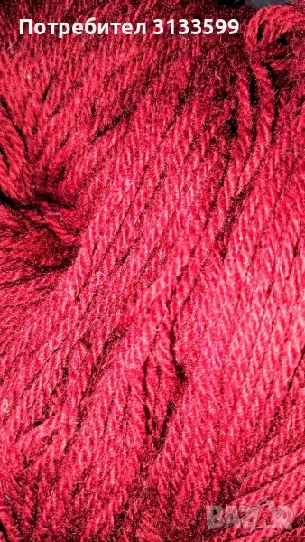 - 310 г дебела вълнена тъмночервена прежда. Цена: 18 лв.