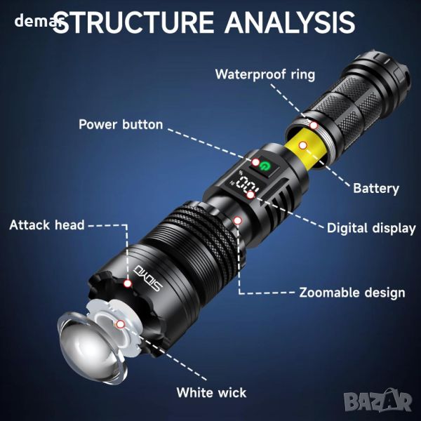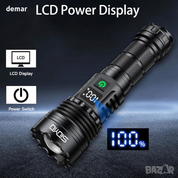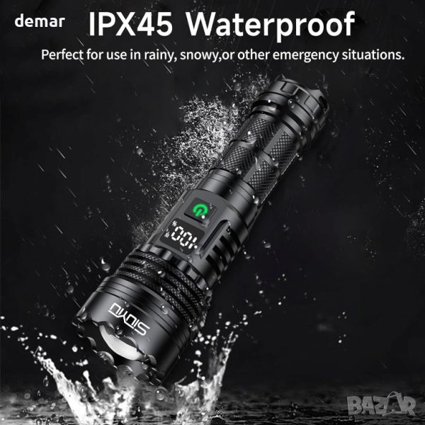 Siuyiu Акумулаторна фенерче Led Torch, 6500 лумена с регулируем фокус, IPX45