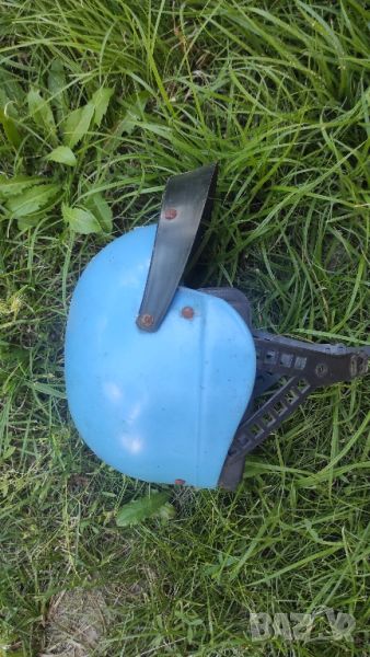 Стара детска каска от 1983г. с дребни забележки липсва предпазното стъкло отпред , останалото е здраво !