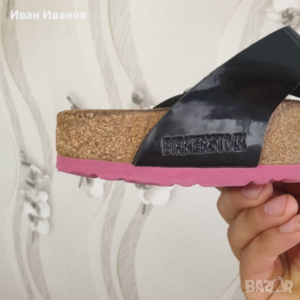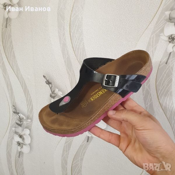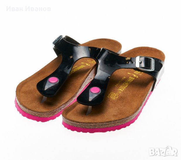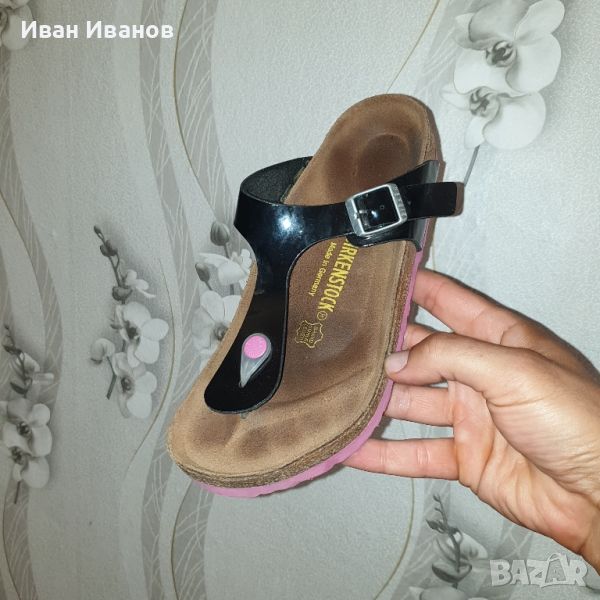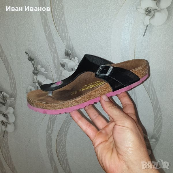 Birkenstock Gizeh Bs Черни . Малко използвани , без следи и забележки .Горна част - Birko Flor®Този материал е разработен от Birkenstock® като алтернатива на кожата. Birko Flor® е изработен от меки акрилни и полиамидни филцови влакна с издръжливо гладко покритие, подобно на кожа.Подплатен велур - Велурената кожа също е изключително здрава и еластична и, както при всички други кожи, използвани от Birkenstock®, е боядисана, а не пръскана, което позволява максимална дишаемост. Естествените разлики в текстурата на повърхността са неизбежни и доказват, че се използва само естествена кожа.Подметка EVA - Етилен винил ацетат има добра прозрачност и блясък, бариерни свойства, издръжливост при ниски температури, устойчивост на напукване, водоустойчивост на топящо се лепило. EVA има слаба или никаква миризма.Закопчаване 1 ремъкСтроителствоВисококачествените материали и уникалната конструкция осигуряват дълготраен комфорт и дълготраен добър външен вид. Концепцията на Birkenstock е лесно разбираема, ако вземем предвид дизайна на нашите крака и механиката на ходене. Всеки контур на подложката за крака Birkenstock е прецизно поставен, за да се разтяга, огъва и движи естествено. Вашите крака се възползват от свободното движение, постоянните упражнения и подобрената циркулация, което води до дълготраен комфорт и по-добро здраве.1. Ръб на стъпалотоУмишлено повдигнат, за да защити пръстите на краката.2. Лента за пръститеВоди пръстите на краката, насърчавайки естественото търкаляне на стъпалото.3. Подпора на кръстосания сводПомага за изместване на натиска от средната към предната част на стъпалото.4. Подплата от велурена кожаСъздава здравословен климат около крака.5. Вътрешна и външна надлъжна опора на сводаДава опора на крака и осигурява стабилност на петата.6. Дълбока чашка на петатаОсигурява стабилна фиксация на крака и поддържа профила на петата.7. Коркова латексова подложкаИзключително гъвкава, осигуряваща уникално високо ниво на комфорт при носене.Подложката за крака BirkenstockИма мека, анатомично оформена сърцевина от корков латекс между двата слоя юта. Долният слой от юта осигурява стабилност, докато горният, по-плътен слой от юта абсорбира влагата. Напластяването им заедно с подплатата от велур гарантира оптимален климат за вашите крака и ненадминат комфорт при носене.1. Подплата от велурена кожаСъздава здравословен климат около крака.2. Горен слой от ютаОтвежда влагата.3. Сърцевина от корков латексГъвкава и лека, осигуряваща високо ниво на комфорт.4. Долен слой от ютаЛесен ремонт и отвеждане на влагата.5. EVA подметкаЛек, издръжлив и ударопоглъщащ материал.НапаснетеПръстите и петата ви не трябва да докосват ръба на сандалите ви, докато стоите в тях. Допълнителното пространство е необходимо за извършване на естественото търкаляне на крака без ограничения - точно както ако сте боси. Birkenstocks са проектирани да бъдат просторни. Когато за първи път пробвате сандалите си, може да ви се сторит големи. Повечето хора се чувстват добре с обикновен монтаж, но ако кракът ви се движи настрани, когато ходите и регулирането на каишката не помага, тесният монтаж може да е по-подходящ. Това е редовно прилягане. Тук има повече информация за оразмеряване, включително диаграма за преобразуване.грижаКожата, използвана за горната част на Birkenstock®, е дебела, но много еластична. Естествената кожа има уникална