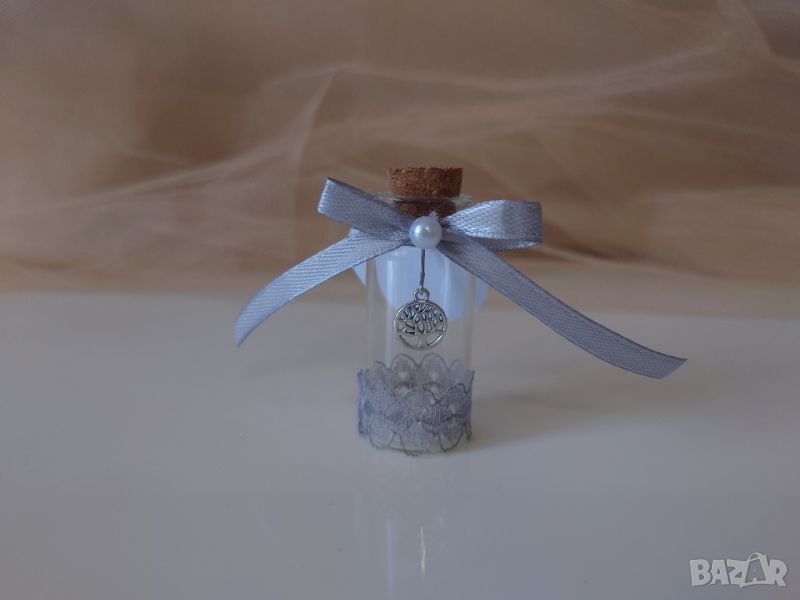 Подаръчета за вашите гости за юбилей, рожденни дни и други поводи. Стъклени шишенца с дървото на живота и тагче с име и дата. Размер на шишенцето - 5 см./2,20 см.