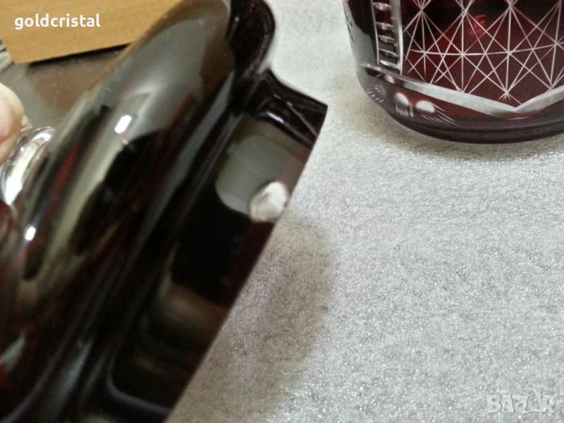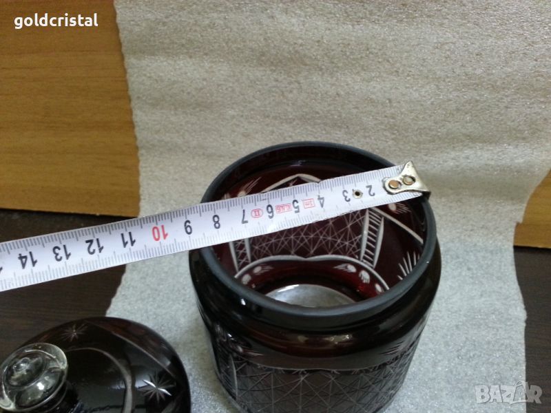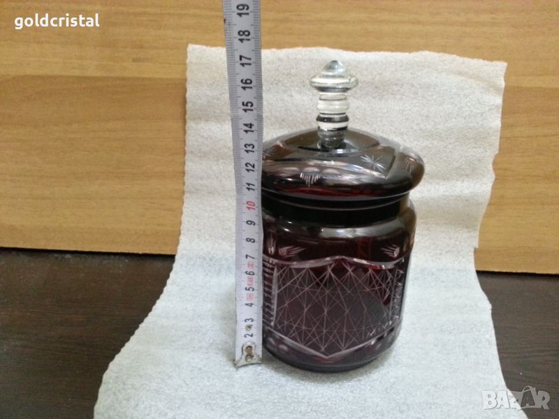 Стар кристален буркан захарница бонбониера цветен червен кристал цвят рубин много малка забележка отвътре на капачето ретро арт декор винтидж колекция стари старинни антикварни предмети обзавеждане за дома и семейството подходящ за подарък за ценители и колекционери
