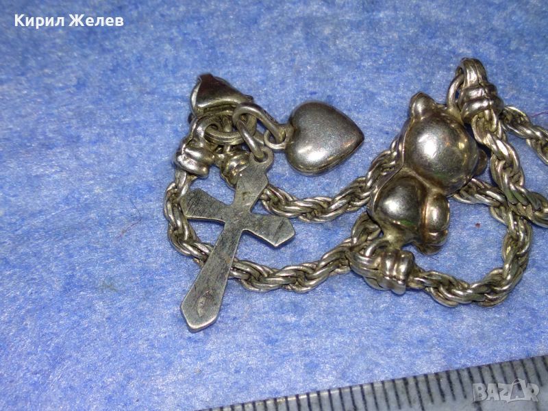 ВИНТИДЖ АРТ СРЕБЪРНА ГРИВНА СРЕБРО 925 със СРЕБЪРНИ КРЪСТЧЕ СЪРЧИЦЕ и МЕЧЕ 44027