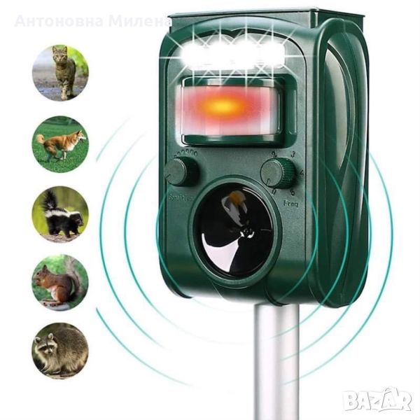 Уредът разполага с интелигентна ултразвукова технология, PIR инфрачервен сензор, соларен модул и мигаща светлина. Снабден е с 5 различни ултразвукови честоти, което прави устройството подходящо за прогонване на различни видове животни като плъхове, лисици, куници, котки, птици и лястовици. Превключващите се LED мигащи светлини допълнително създават ефект, който прогонва птиците. Вграденият PIR детектор за движение реагира само на топлината на тялото на нежеланите посетители, благодарение на което листа и клони не активират уреда.