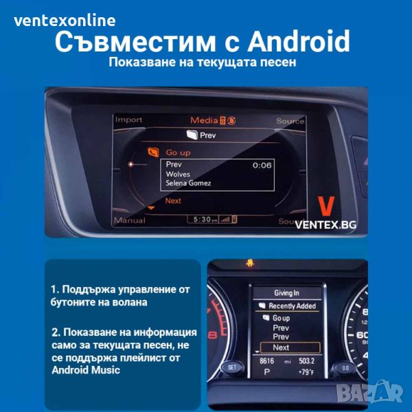 НЕ е съвместим със системата MMI 2G на Audi от 2006-2009 година.