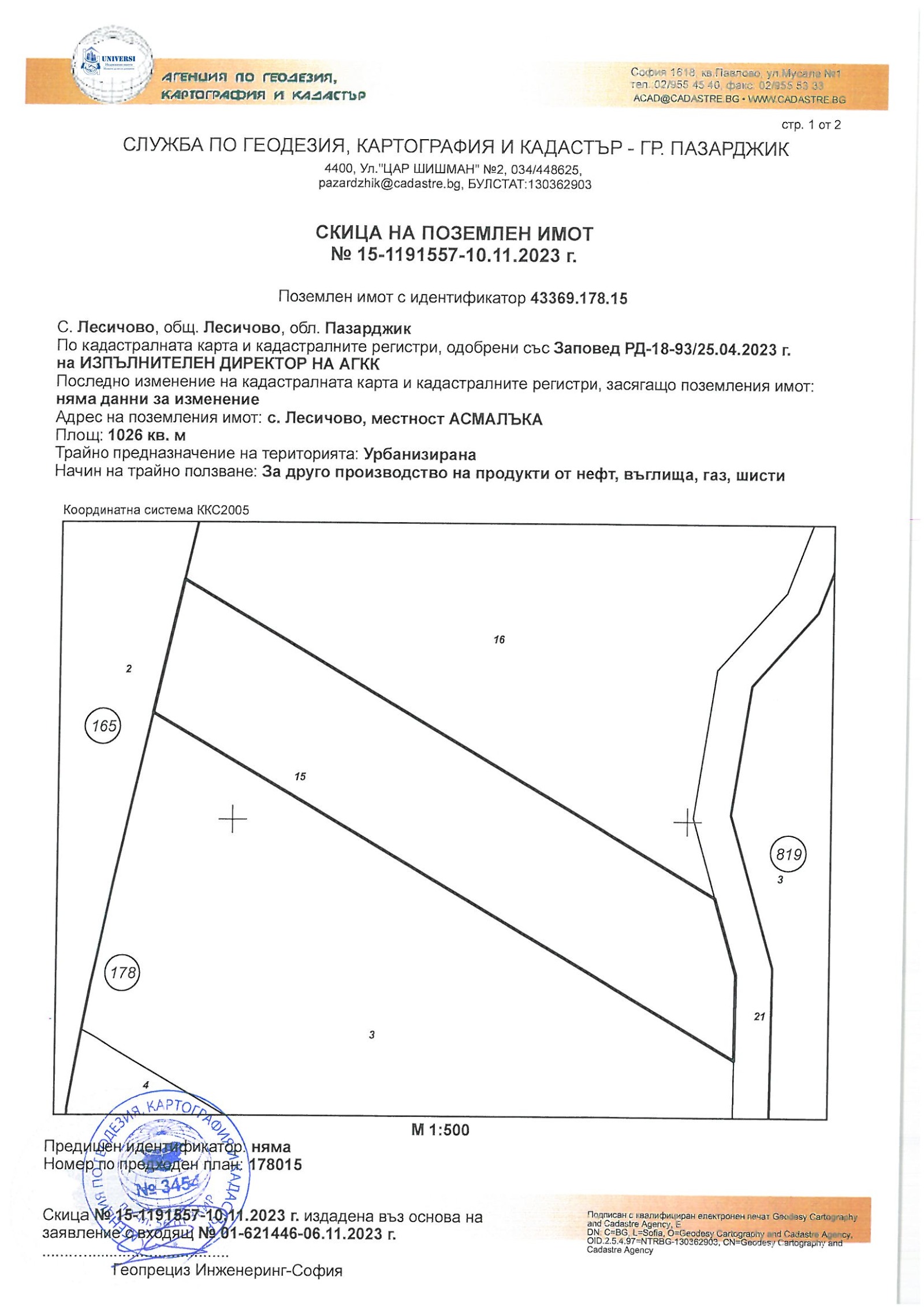 Съгласно ОУП на община Лесичово, имотите попадат в зона ПП - предимно производствена устройствена зона. Всички гранични имоти са предназначени за земеделски нужди.