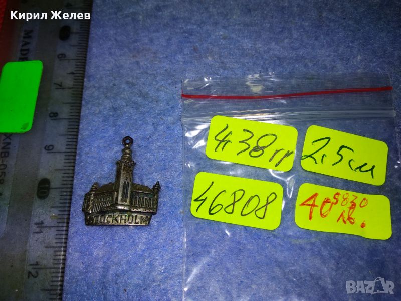 STOCKHOLM Стар СРЕБЪРЕН МЕДАЛЬОН Арт ВИСУЛКА ЛАКИРАНО СРЕБРО 830 Проба СТОКХОЛМ ШВЕЦИЯ Печати 46808