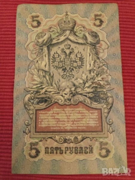 Банкнота 5 рубли 1909 година, Царска Русия. , снимка 1 - Нумизматика и бонистика - 46425758 Банкнота 5 рубли 1909 година, Царска Русия. , снимка 2 - Нумизматика и бонистика - 46425758 Банкнота 5 рубли 1909 година, Царска Русия. , снимка 3 - Нумизматика и бонистика - 46425758 Банкнота 5 рубли 1909 година, Царска Русия. , снимка 4 - Нумизматика и бонистика - 46425758 1/4