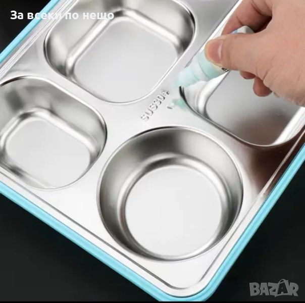 Представяме ви перфектното решение за съхранение на обяд за вашите деца - утопляема и непропусклива кутия за обяд с 5 отделения от неръждаема стомана. Тази висококачествена кутия предлага