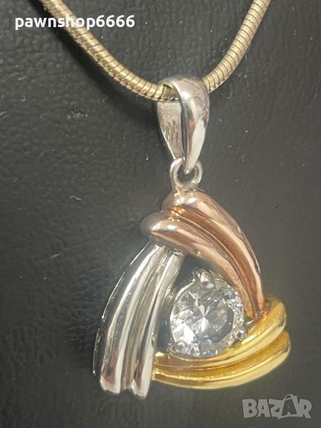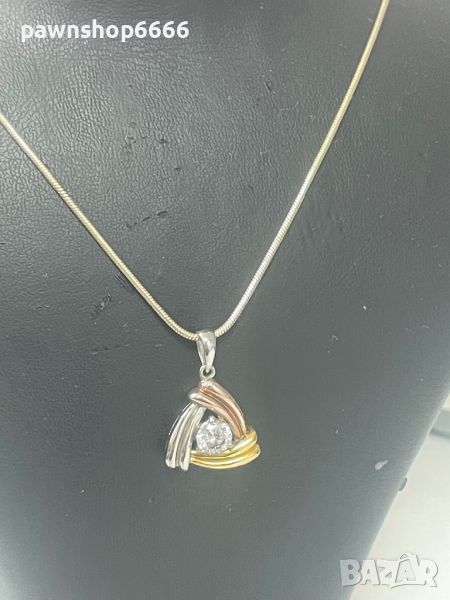 Предлагаме изящно сребърно колие проба 925 с уникална висулка в три цвята – бяло, розово и жълто, декорирана с блестящ кубичен циркон (CZ).