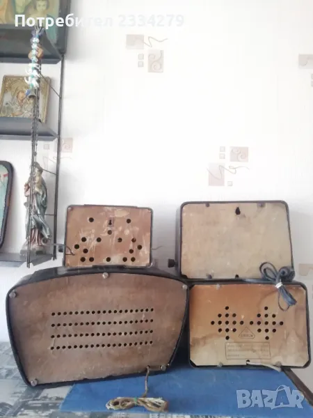 радиоточка със 100% автентичност. Комплектна без счупено или пукнато и с оригинален капак отзад, добре запазена за годините си. Размери: 38х16см.,височина 24см.,цена 50лв. N:2 малка руска радиоточка от 50-те години с размери: 22х15см. N:2 Дясна страна-горна бакелитов радиоточка с размери:28х20см.,,з-д ВОРОШИЛОВ през 50-те години, цена 25лв. Дясна-долна с размери: 30х20см.,българска комплектна с цена 25лв.