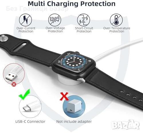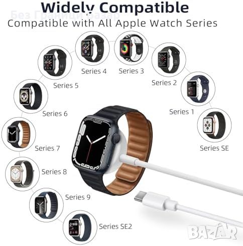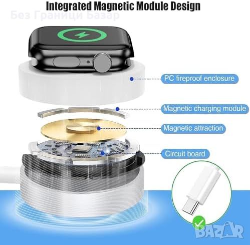 Нов Високоскоростен USB-C Магнитен Кабел за часовник Apple Watch Series 9-2