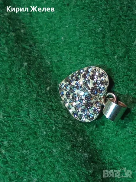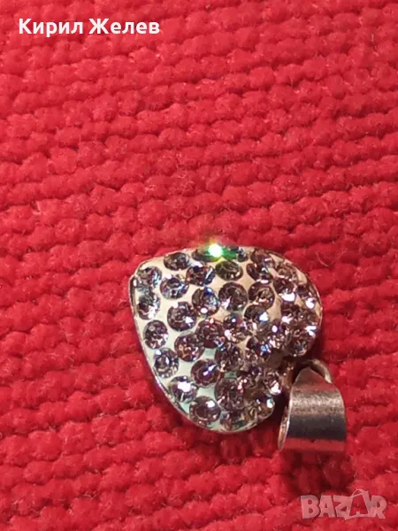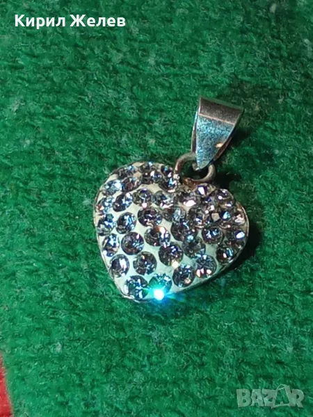 СЪРЦЕВИДЕН СРЕБЪРЕН МЕДАЛЬОН СРЕБРО 925 с БЯЛ ЕМАЙЛ и ИСКРЯЩИ КРИСТАЛИ 46792