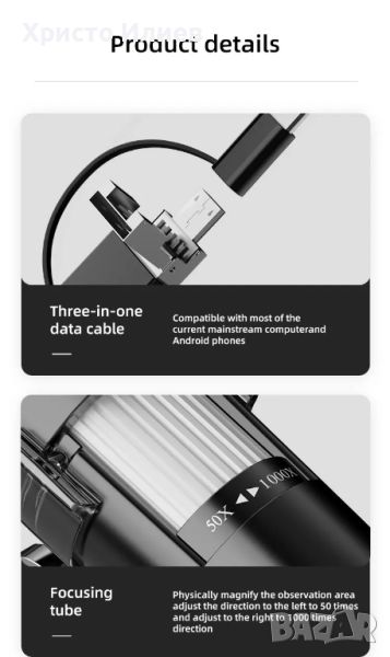 • Преносим и удобен: Този USB преносим електронен микроскоп е перфектен за използване в движение, като улеснява ремонта на мобилни телефони или запояване на светодиоди.