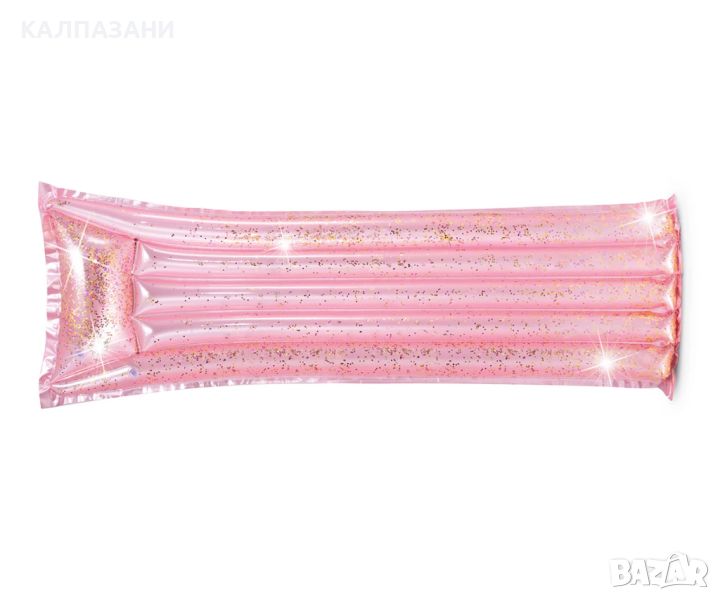 Изглеждайте невероятно и се забавлявайте на следващото парти в басейна с Intex Pink Glitter Mat. Този розов надуваем дюшек изпълнен със златен и розов блясък е създаден да ви осигури комфорт, докато релаксирате на слънце през цялото лято. В комплекта е включена и ремонтна лепенка.