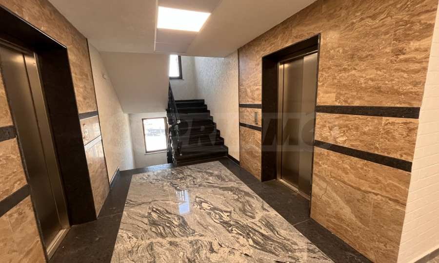 Общи части на сградата напълно завършени, стени - камък Травертин на партерен етаж, останалите етажи водоотблъскваща и UV устойчива мазилка Тракон ;