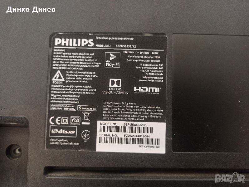 PHILIPS 58PUS8535/12 с счупена матрица → Обява 46432175