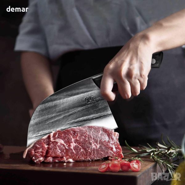 Ножът ENOKING Chef, ръчно изкован от занаятчии с над 50-годишен опит, преминава през строг процес, включващ закаляване, начукване, темпериране и затягане. Отличаващ се с ексклузивен процес против ръжда с полирано, изковано острие и незалепващо антиокислително покритие, този нож остава по-чист и издържа по-дълго. Изработен от високо въглеродна стомана 5Cr15MoV, той предлага висока твърдост, устойчивост на износване и ръчно полиран ръб при 16 градуса на страна за превъзходно задържане на ръба и дълголетие. Този многофункционален нож е идеален за месо, кости, пържоли, риба, зеленчуци и плодове. Предлага се с висококачествена кожена кания и изящна подаръчна кутия за лесно пренасяне и представяне.