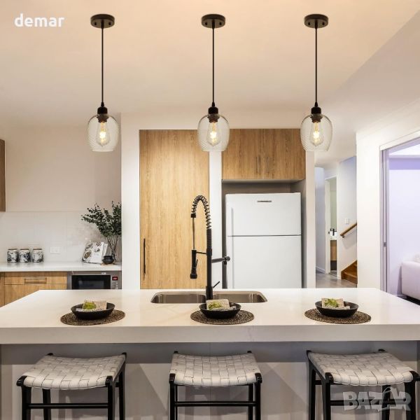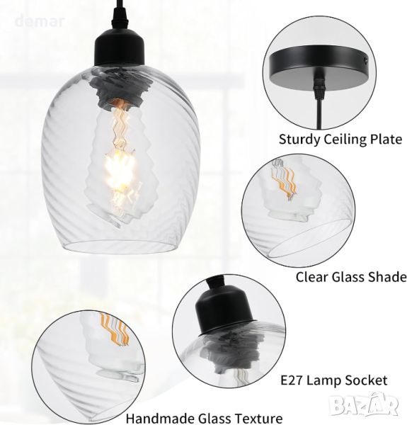 Индустриалната висулка се отличава с висококачествен раиран стъклен абажур и издръжлива черна метална основа, предлагаща фина изработка и модерна естетика. Абажурът от прозрачно стъкло меко разсейва светлината, добавяйки лукс към всяко пространство. Забележка: Възможно е да се появят мехурчета по стъклото поради производствения процес. Светлината включва издръжлива и регулируема черна жица, която може да се персонализира за стаи с високи или ниски тавани, с максимална дължина на окачване от 171,8 см (67,63 инча) и размер на абажура от 14 см. Предлага се с комплект за лесен монтаж: просто свържете главата към стъкления абажур с метален пръстен, окабелете го и инсталирайте крушка E27 (не е включена, макс. 60 W, напрежение 220-240 V). Идеален за различни вътрешни пространства, включително кухненски острови, всекидневни, коридори, спални, фоайета, трапезарии, входове, барове, кафенета, хотели и ресторанти, този висящ осветител осигурява топла и приветлива светлина.