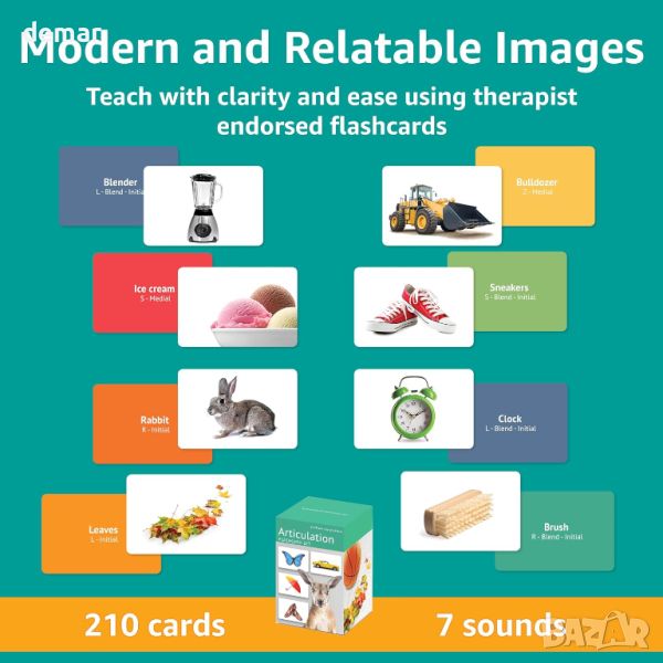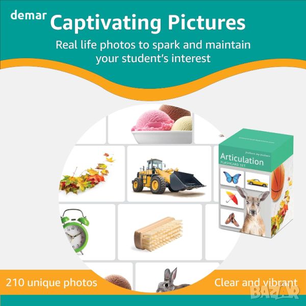 Тези завладяващи картинни карти за логопедична терапия подпомагат езиковото развитие, ясната комуникация, артикулацията, разговора, критичното мислене, последователността и подобрената памет. Комплектът включва 210 висококачествени флаш карти с модерни снимки от реалния свят, с 30 изображения всяко за седем звука: S, R, L, Z, S-Blend, R-Blend и L-Blend. Подходящи за родители, учители и терапевти, тези карти са идеални за общо образование, логопедия, ESL/ELL, ABA и обучение за аутизъм. Одобрени от SLP, те се препоръчват за малки деца (2-4 години), деца и възрастни и са идеални за детска градина, предучилищна възраст, училище, специално образование и домашно обучение. Включено е интерактивно Ръководство за дейности с флаш карти, което ги прави чудесен съставител на речник за деца и подходящи за дейности в детската градина, игри за възстановяване след инсулт и ESL игри. Всяка карта е с размери 5,9" x 3,9", като изображението е отпред и свързаната дума и звукова цел на обратната страна. Този комплект е основен ресурс за всеки, който търси флаш карти за деца, материали за ABA терапия, материали за SLP или инструменти за логопед.