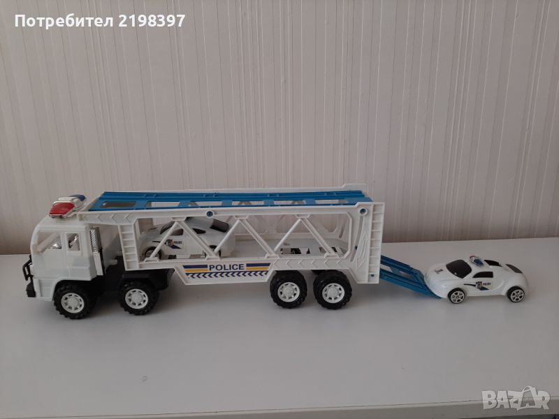 1. Полицейски автовоз - 40 см, с две колички към него- 10 лв