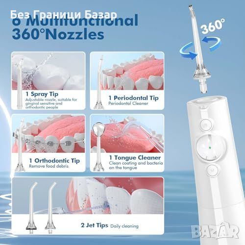 6 Дюзи: Включват джет, ортодонтски, периодонтални и дюзи за почистване на език.