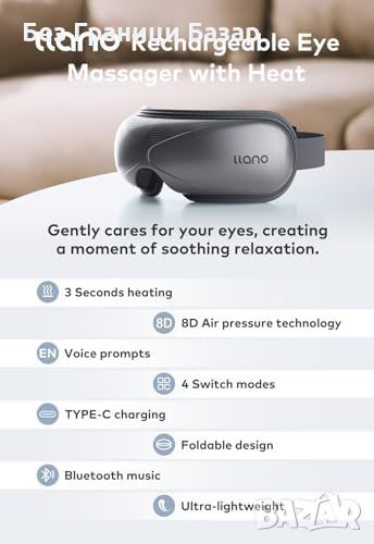 Нов Масажор за очи с Bluetooth музика и топлина - идеален подарък → Обява 46435464