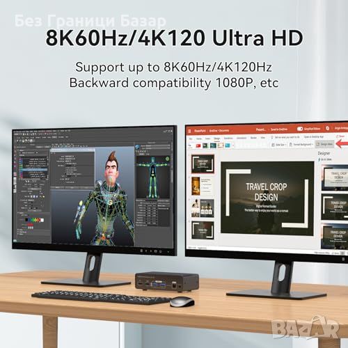 Поддържа Ultra HD 8K*60Hz резолюции, съвместим с 4K*120Hz, 1440P*60Hz, 3D и 1080P*60Hz