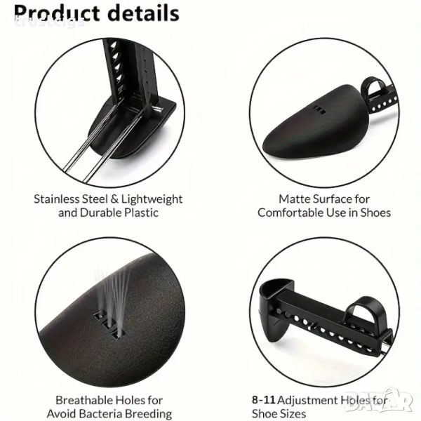 Разширителят за обувки е ефикасен и лесен за използване инструмент, който ще ви помогне да се насладите на комфортните обувки, които заслужавате. Поръчайте си го още днес и се сбогувайте с тесните и неудобни обувки!