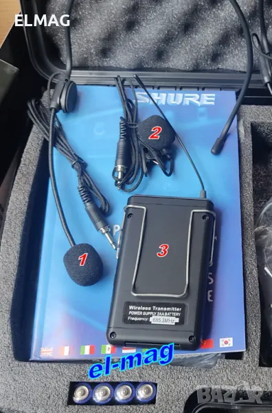 - Серията Shure UHF изпълнена със два безжични микрофона