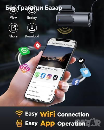 Мониторинг при паркиране: Автоматично записва при движение или удар, защитавайки автомобила.