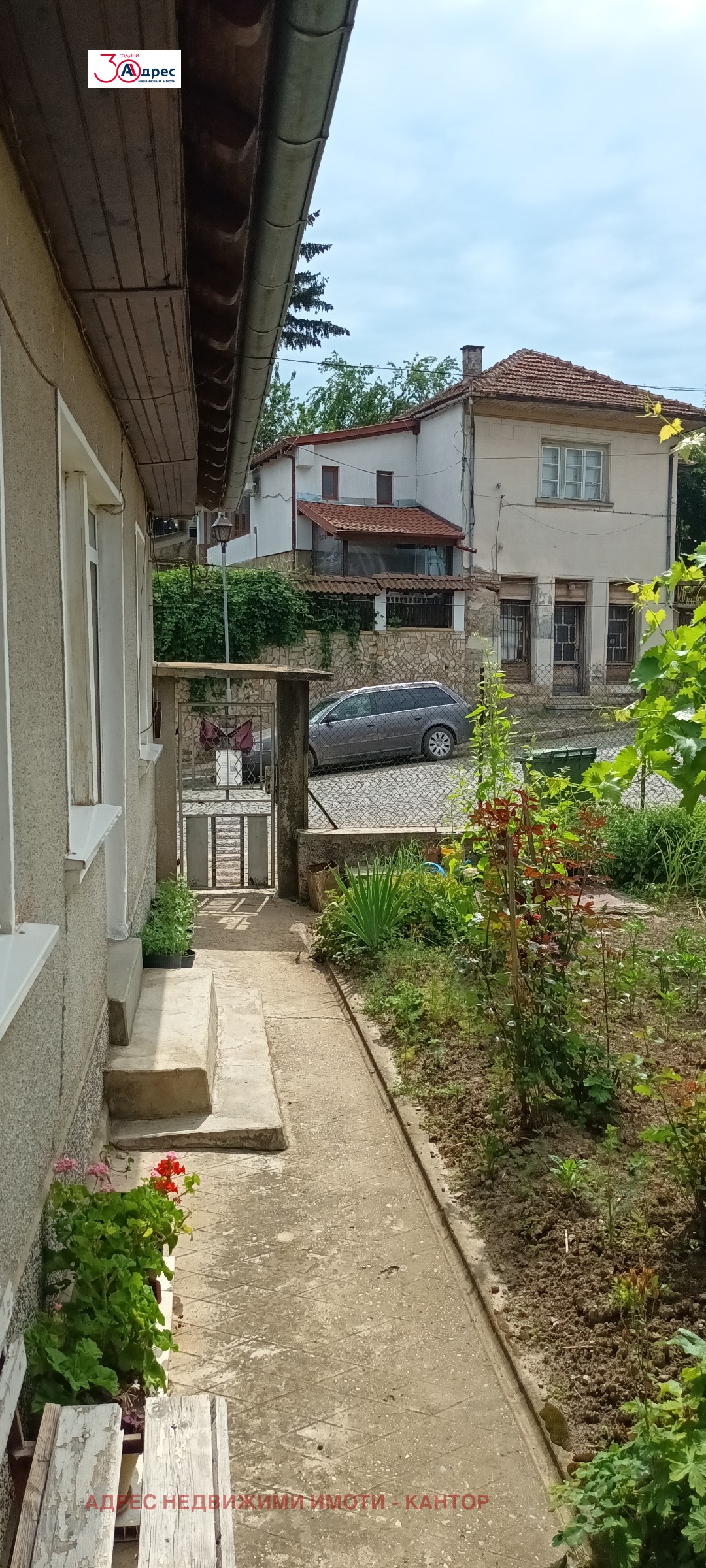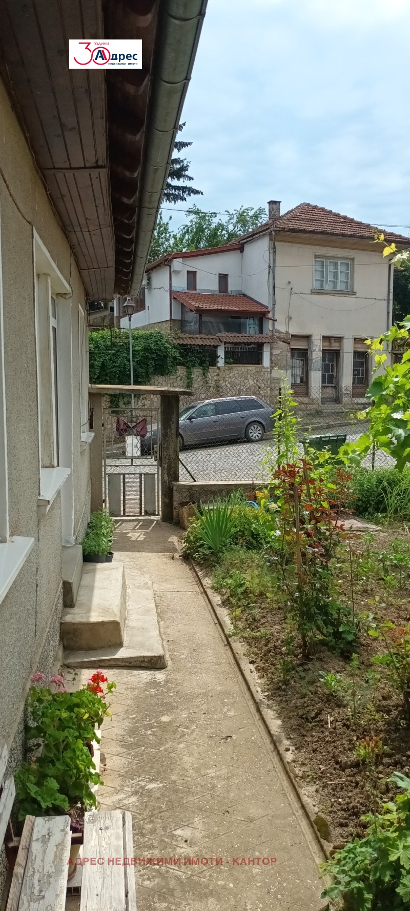 Две къщи в един двор, на главна улица с южно изложение. Направен е основен ремонт на покривите и на двете и част от дограмата е подменена. Първата предлага спалня , хол, кухня, дрешник с вход за тавана, голям коридор , удобен за стая и гараж с вход към мазата. Във втората има спалня, кухня, баня с тоалетна, коридор и килер. Партида за ток и вода. Асми пред къщата , външна чешма и добре аранжирана градинка. Имота е с потенциал, заради прекрасната гледка откриваща се към града.