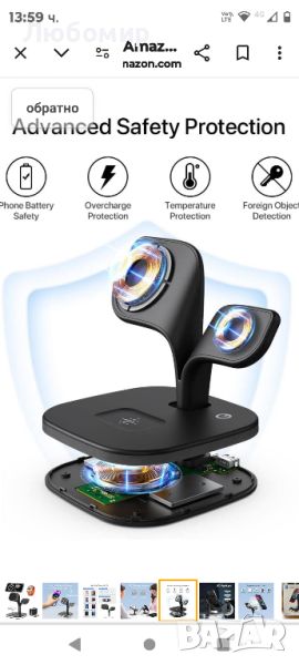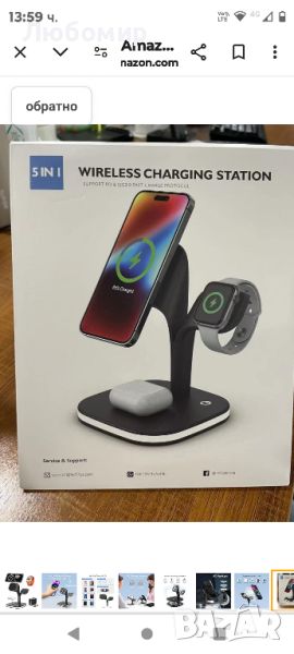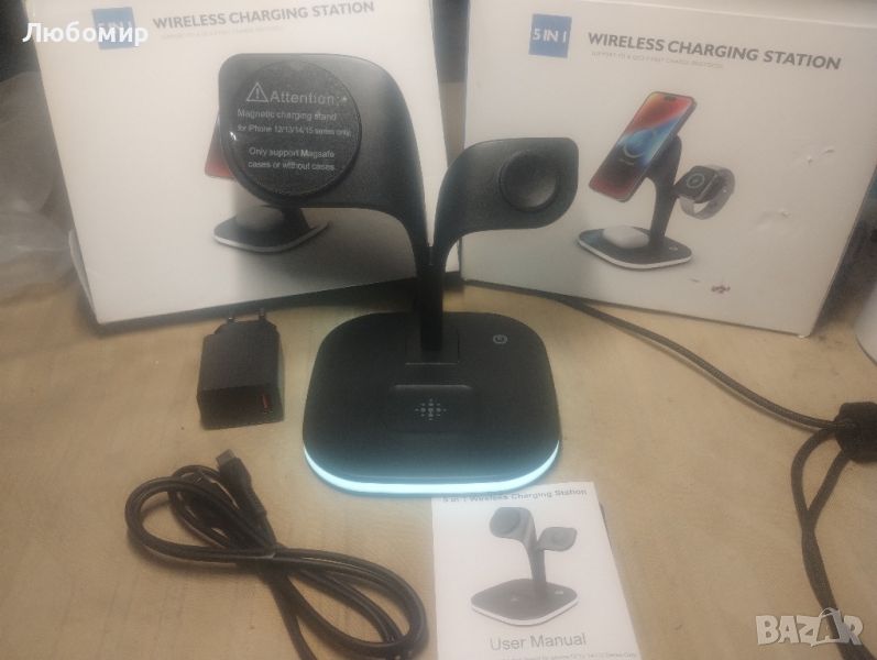 безжично зарядно устройство за iPhone 15/14/13/12, Apple Watch Series 1-9, AirPods Pro с LED