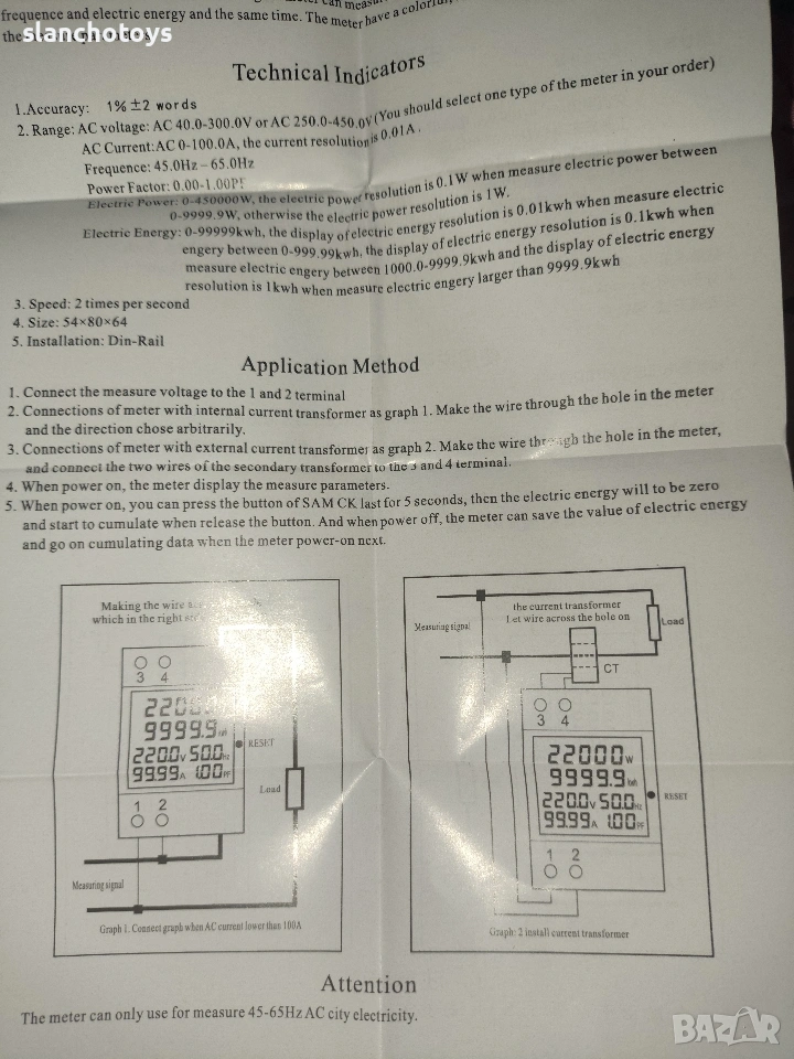 Функция: Диапазонът на измерване е 0-99999kwh, а минималната резолюция на дисплея от 0-999,99kwh е 0,01kwh