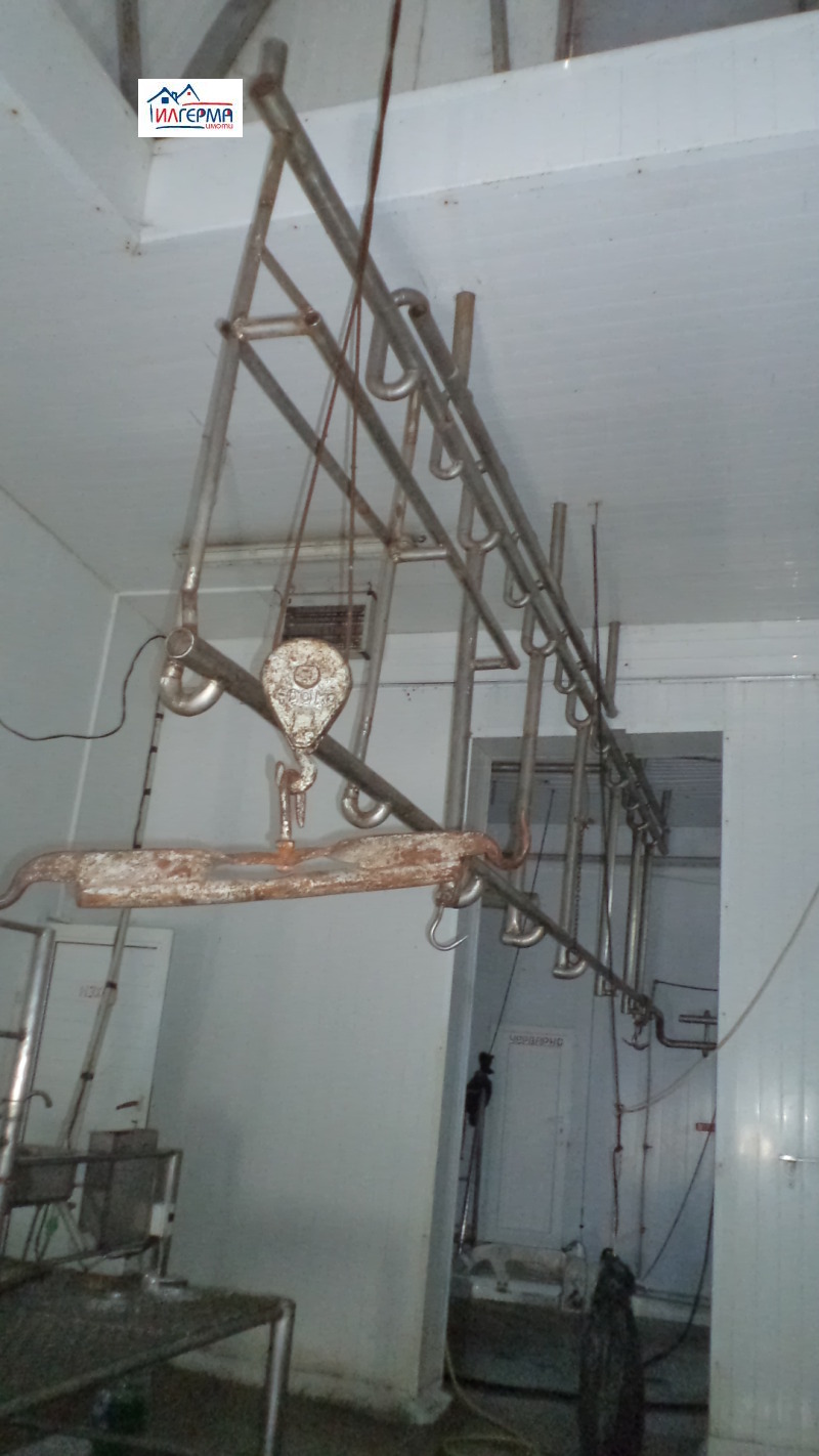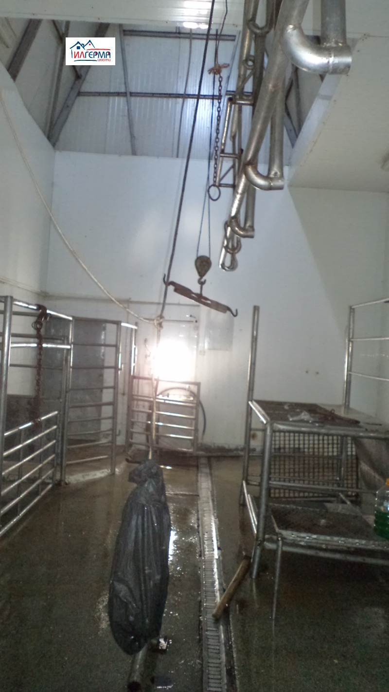 ДЕЙСТВАЩА НАПЪЛНО ОБОРУДВАНА КЛАНИЦА. РАЗРЕШЕНИЕ ЗА ПОЛЗВАНЕ. ЛИЦЕНЗИЯ С ЕВРОПЕЙСКИ ИЗИСКВАНИЯ за дребни преживни животни до 18 месеца и свине. Парцел: около 4500 кв.м. САМОСТОЯТЕЛЕН ВХОД. ЕДНОЕТАЖНА МАСИВНА СГРАДА: над 200 кв.м, офис, ветеринарен кабинет, кланнични зали, транжорна/експедиция, хладилни камери, съблекалня, спомагателни помещения. НАСТИЛКИ: мозайка. СТЕНИ: