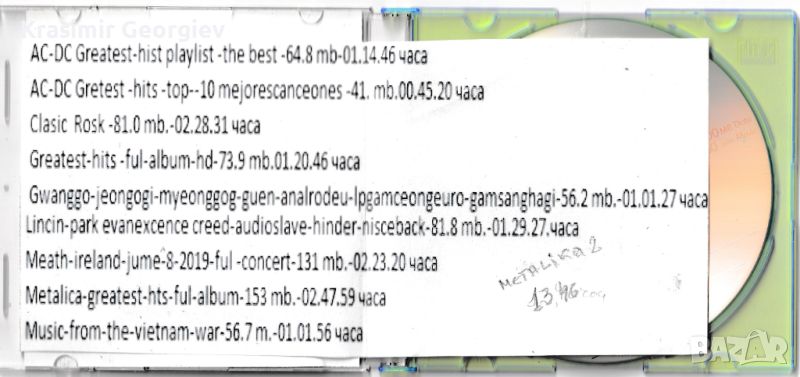 2-Металика -1 -Рок и метал музика ,предимно концерти- от 1985 година,2001 година и 2009 година.Времетраене не по малко от 6 часа.
