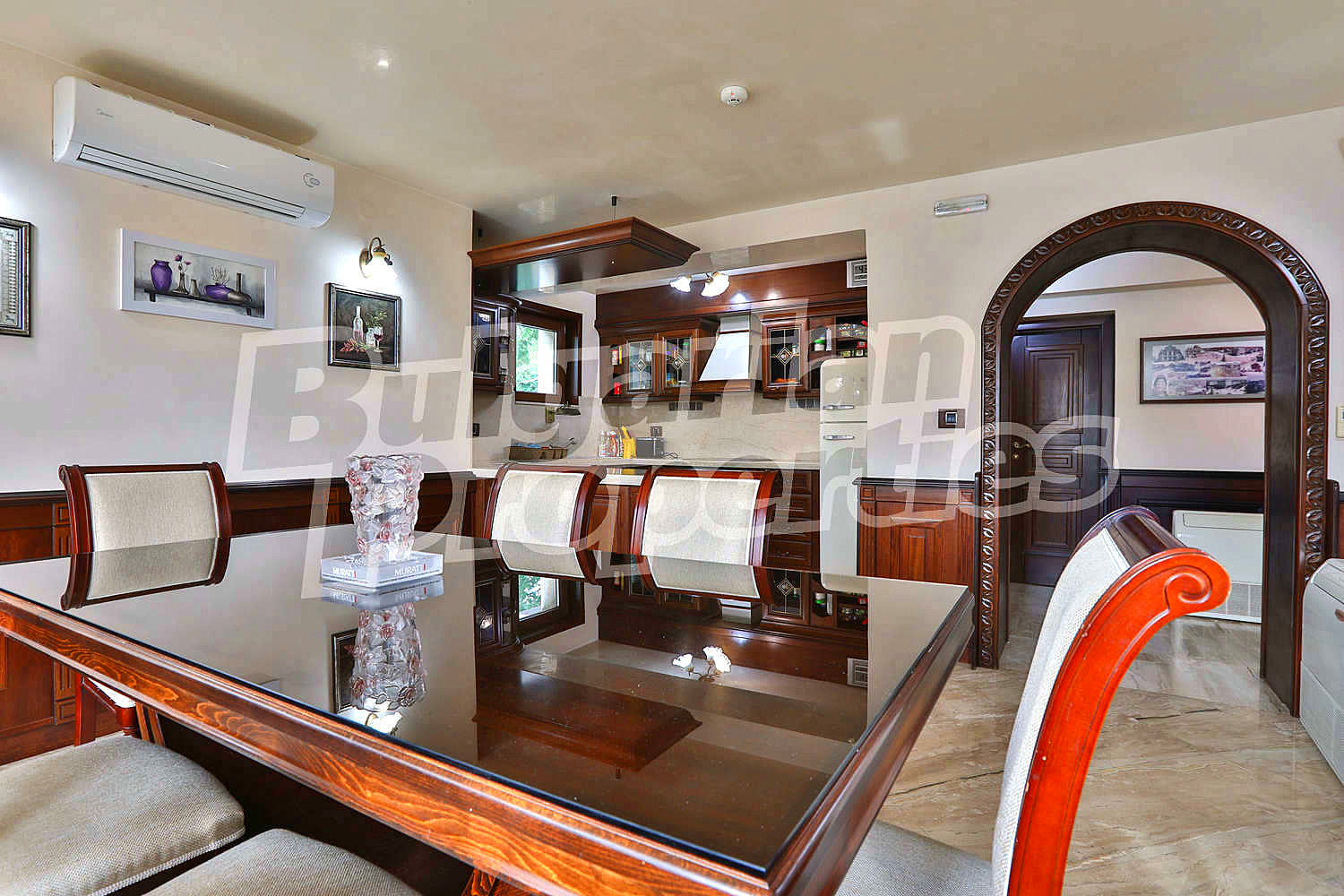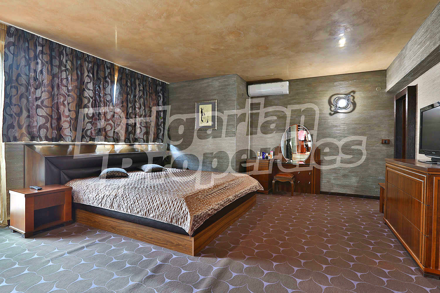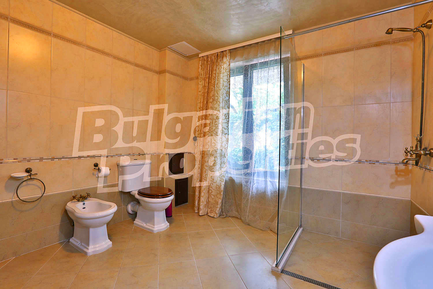 Изключително просторен и изискан дом със стилен интериор представен в РЗП от 600 кв. м. и аранжиран двор от 1 070 кв. м., разположен на магистрален път срещу курортен комплекс Свети Свети Константин и Елена в елитния район на вилна зона Траката.