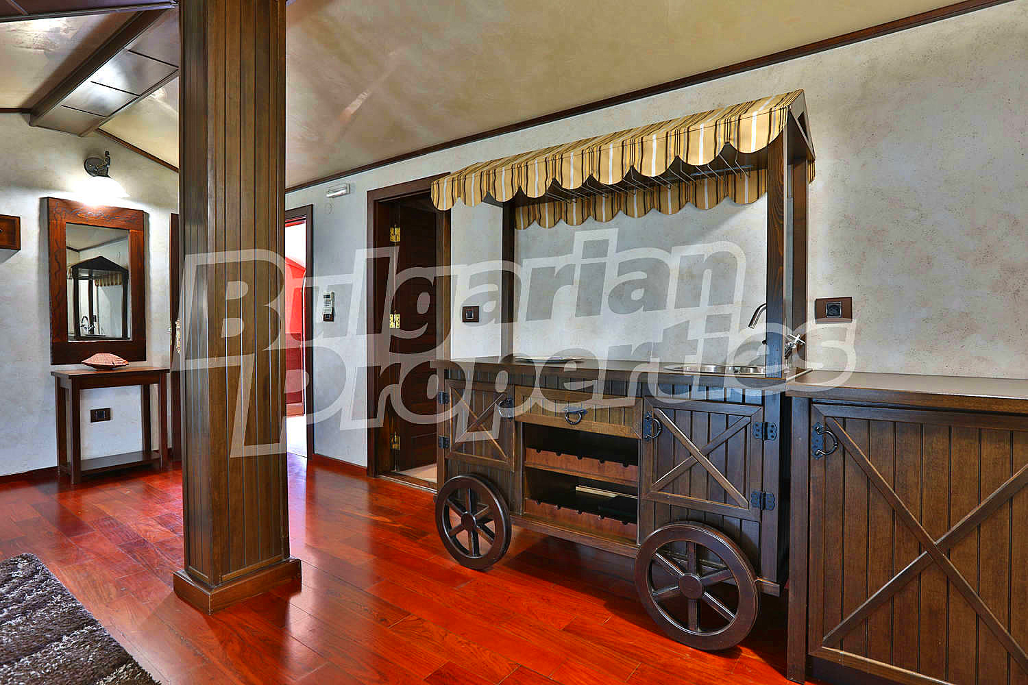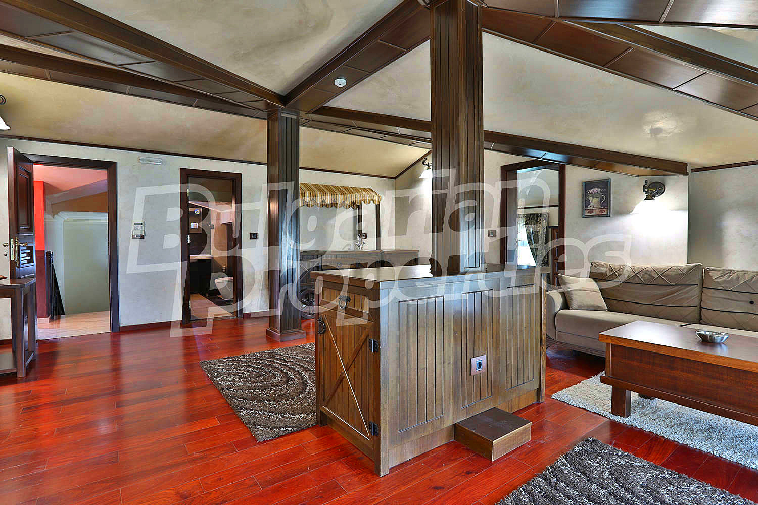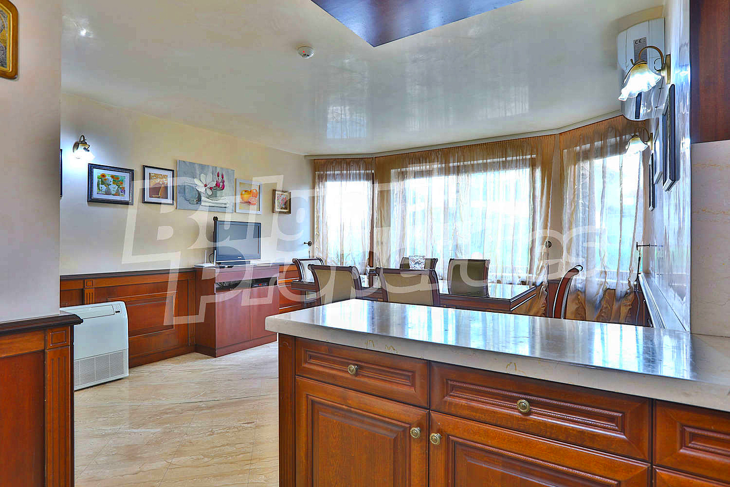 Изключително просторен и изискан дом със стилен интериор представен в РЗП от 600 кв. м. и аранжиран двор от 1 070 кв. м., разположен на магистрален път срещу курортен комплекс Свети Свети Константин и Елена в елитния район на вилна зона Траката.