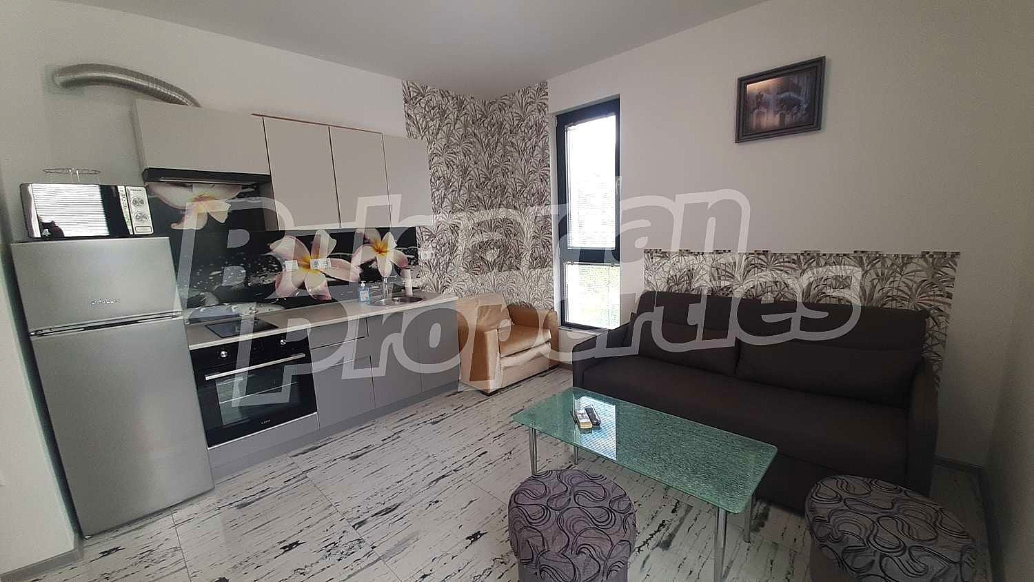 Обзавеждане и оборудване: Висококачествено обзавеждане, включващо гардероб, телевизор и климатик, което осигурява всички удобства на съвременния живот.
