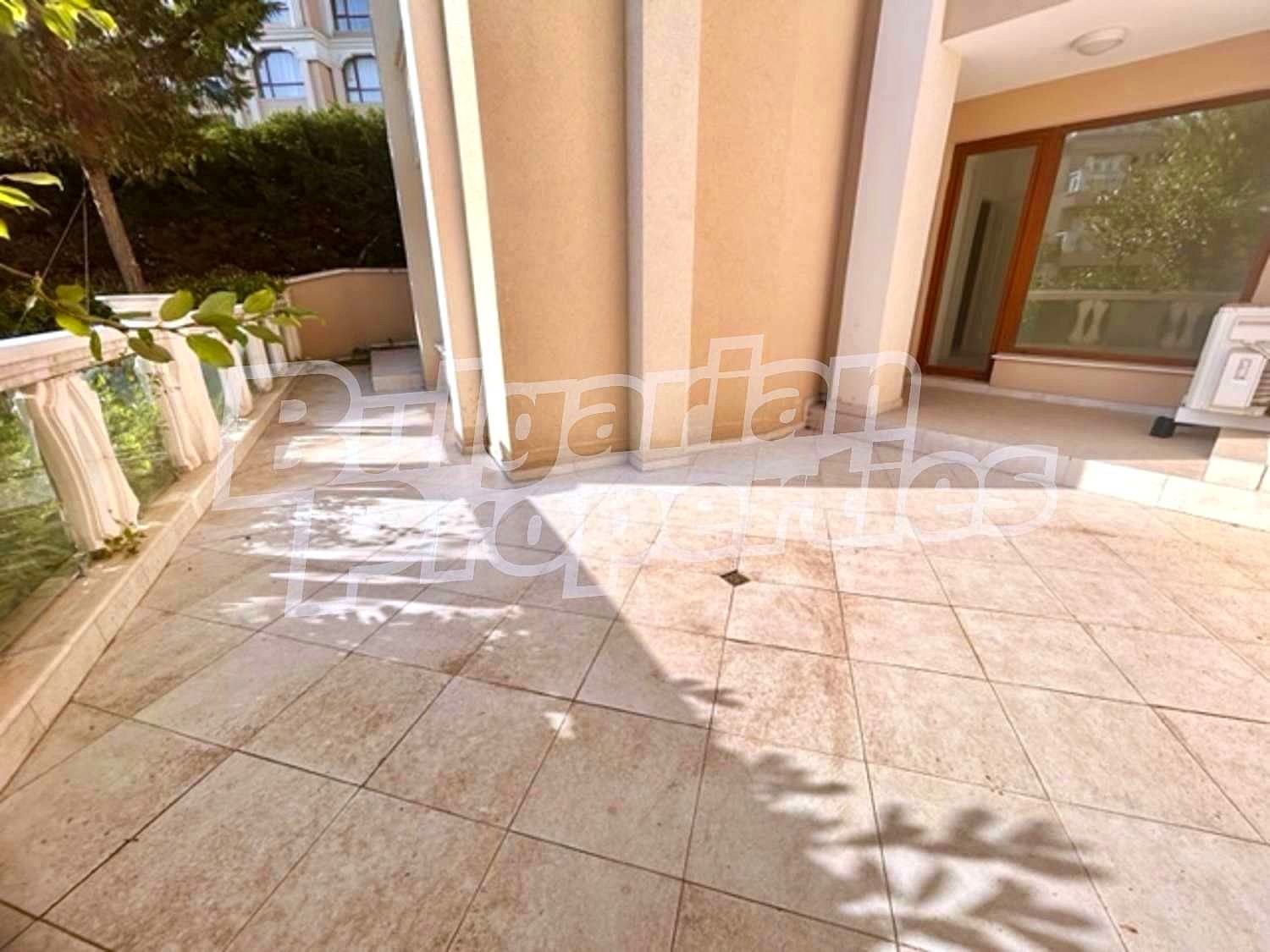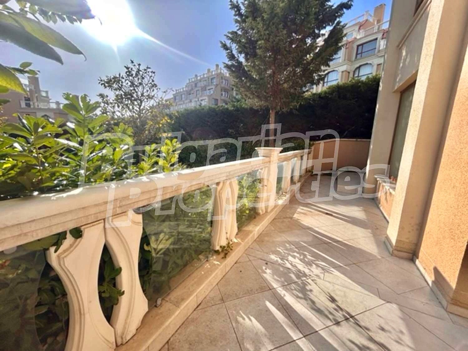Описваният апартамент е разположен на партера, с приятна гледка към вътрешния двор на комплекса. Общата квадратура на жилището е 141 кв.м., чиста площ - 117 кв.м. с включна тераса от 17 кв.м. Състои се от: