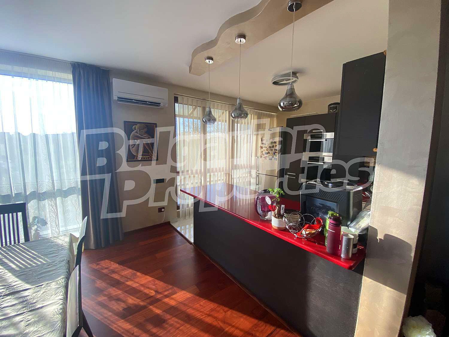 Мезонетът е разположен на 3-ти и 4-ти етаж в луксозна сграда с асансьор и контролиран достъп с 24 часа видеонаблюдение. Сградата е с добре поддържан озеленен двор, луксозно изпълнени общи части с вентилация и климатизация. Намира се на метри от морето, с много добра комуникация към всички възлови места на града.